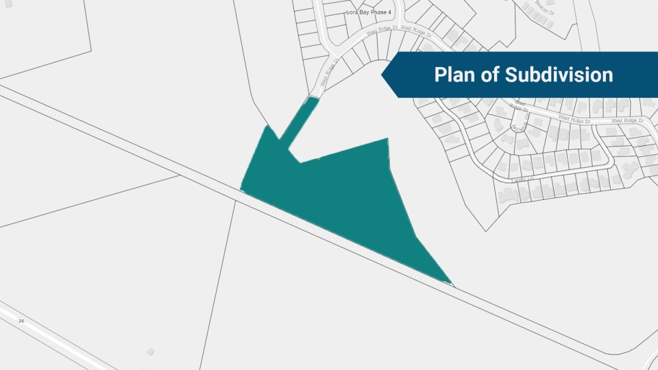 Location: Located along Sladden Court, the site lies southeast of Lora Bay Masters Block 39 and west of the existing residential area on West Ridge Drive.